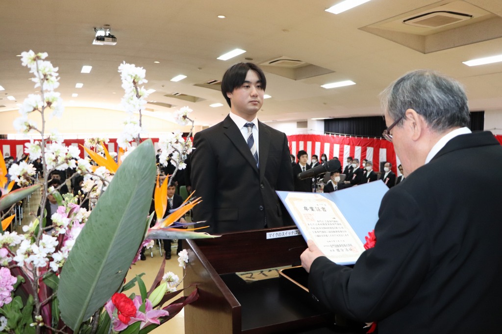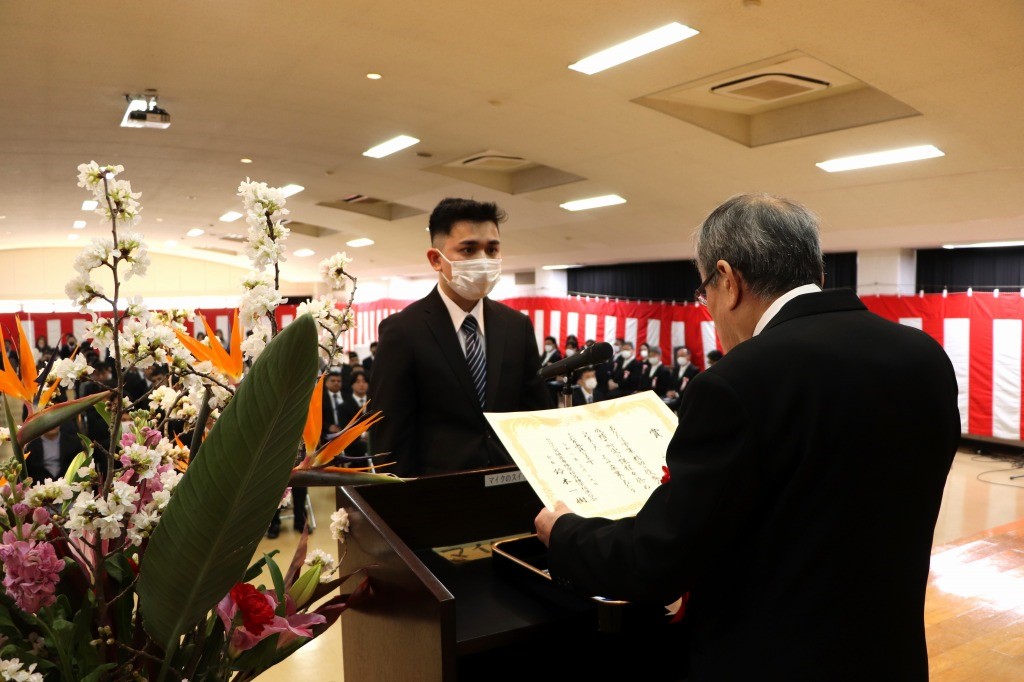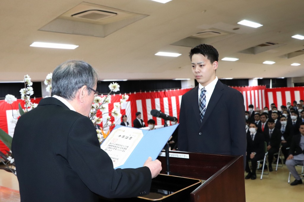 代表者が、壇上にて卒業証書および各種賞状を授与されました。